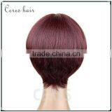 Wine Red Indian Remy Human Hair Full Lace Wig Short Silk Straight Human Hair Wig