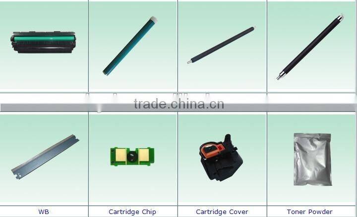 Toner cartridge parts:Toner cartridge, OPC drum, PCR,DR,Cartridge chips,Seals.Cover and so on.