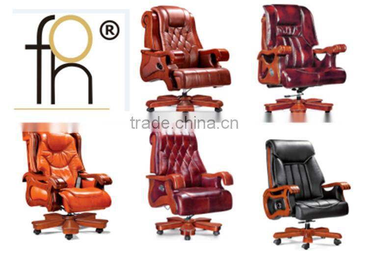 High Quality Black Leather Office Chair With Sturdy Solid Wood Frame (FOH-A60)