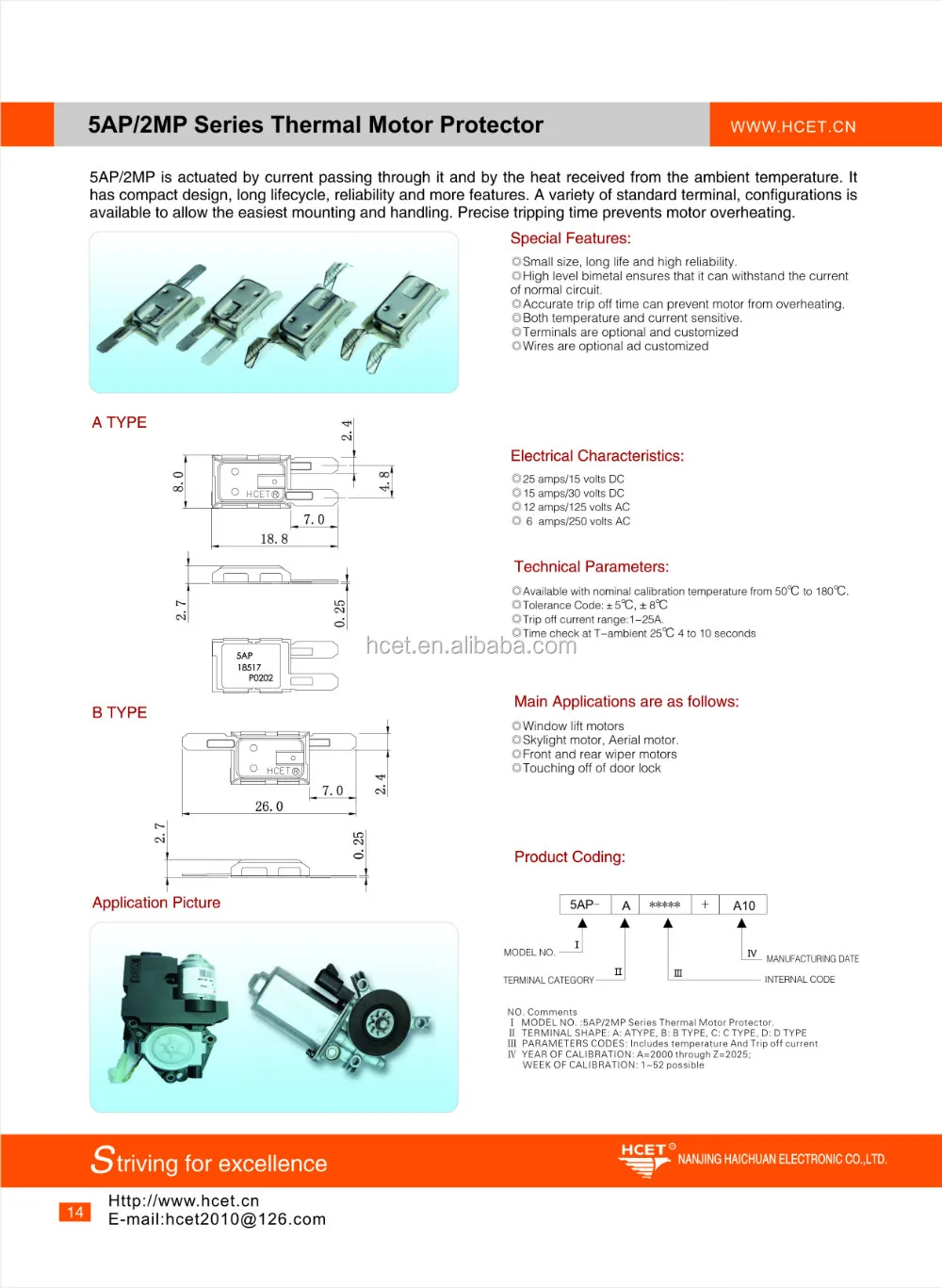 5AP, 2MP, Temperature Protector, Protector, Motor Protector