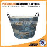 Laundry basket with handles black color polyester and cotton storage box