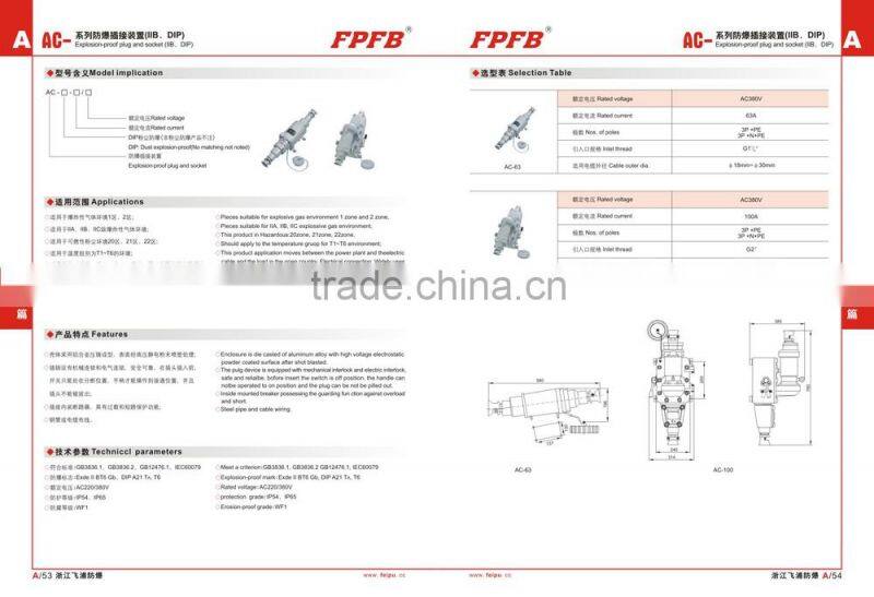 AC-16A 32A | AC220V/380V | 16A 32A | Exde II BT6 Gb, DIP A21 TA, T6 | IP54, IP65 | WF1 | G1 1/2", G2" |