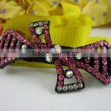New Pink Irregular Bow-Knot Hair Clip Barrette Rhinestone Alloy