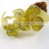 New Hair Bow Hairpin Claw Clip Brown Flower Acryl Rhinestone