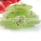 New Hair Bow Hairpin Clip Green Claw Barrette Acryl Rhinestone