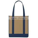 Non-Woven Two-Tone Shopper Tote Bag-Tan With Navy Accents and Handles