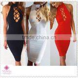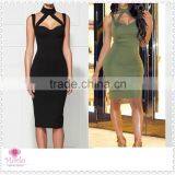 2016 Summer Latest Fashion High Neck Knee Length Tight Sexy Women Dress Quality Choice