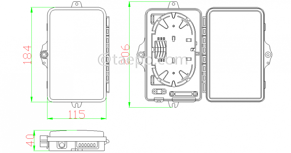 | TP-3322-6 | Fiber termination box (FTB), outdoor, SC, 6 fibers, plastic housing, 184x115x40mm, without adapters, pigtails |