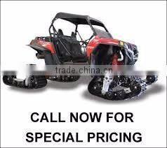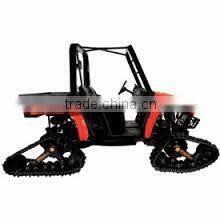 Track system for atv,it's an integrated mechanical assembly which can make your vehicle go anywhere even harsh terrains, i.e.: ice, snow, mud, sand, forests, swamp, rocks, etc.