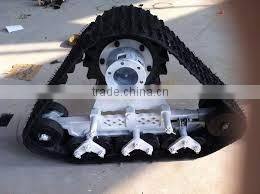 Four wheeler with tracks,it's an integrated mechanical assembly which can make your vehicle go anywhere even harsh terrains, i.e.: ice, snow, mud, sand, forests, swamp, rocks, etc.