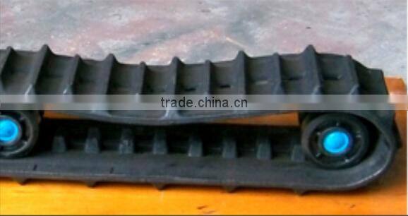Interchangeable guide type replacement tracks were originally designed for use on equipment with undercarriages designed for steel tracks but now most can interchange with rubber. Interchangeable type rubber tracks have pitch measurements (this is the distance from the center of one metal link to the center of the next metal link) of 47, 48, 48.5, 60, 52.5, 53, 54, 54.5, 55, 55.5, 56, 71, 72, 72.5, 75.5, 76, 81, 83.5, 92, 96 millimeters.