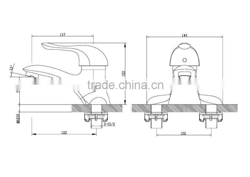 Economic Chrome Solid Brass Two Holes Ceramic Cartridge Bath Sink Wash Basin Faucet Mixer Tap Manufacturer 091201