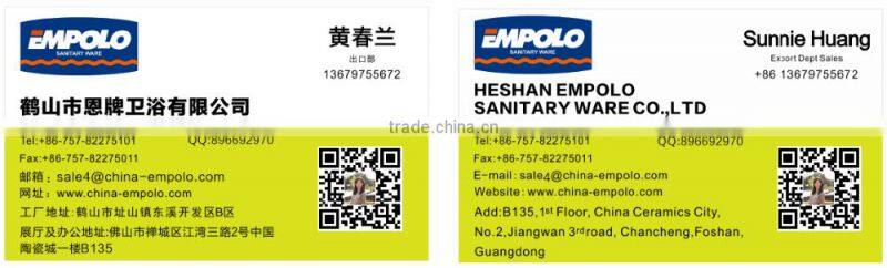 Empolo was established in 2004 and located in Zhishan Town Jiangmen City –the famous production base for bathroom faucets and fittings. It covers an area of 10 000 SQM with more than 10 years development. It has faucets ,showers ,bathroom accessories ,bathroom furniture and ceramic products. We are an itergrated enterprise including R&D ,moulds making, manufacturing and marketing.