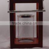 DOUBLE CANDLE WOODEN LANTERN WITH STEEL HANDLE