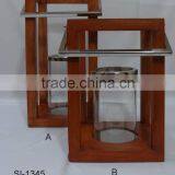 SET OF TWO LANTERNS/WOODEN LANTERN WITH STEEL HANDLE