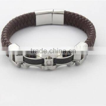 High Quality brown Leather Bracelet w/magnetic closure fashion jewelry