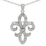 Charm Silver CZ Fleur de Lis Pendant Necklace Vners