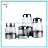 Fashional Metal Skin Kitchenware Glass Condiment Jar Set With Metal Lids