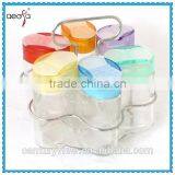 Colored Decorative Glass Jar Glass Cruet Set With Stand Glass Condiment Set