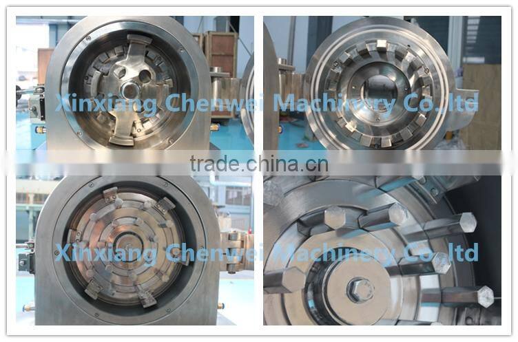 This grinding machine is made up of feeding material part and crush part, and dust collect part. Its coniguration is very briefness, all the parts which contact the material are made of stainless steel.