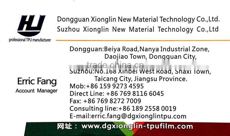 Our company Xionglin is the first and biggest professional manufacturer for TPU thin film production in China.(5 Production base,including 4 in China mainland and 1 in Vietnam.Annual production more than 18000T). We are the Largest annual production,highest market share,Most varieties TPU products company in China.Any products you could find in our company with best price and quality.