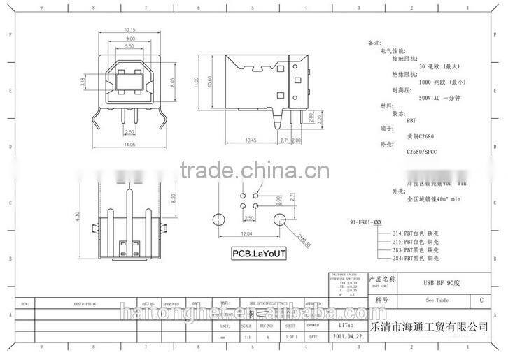 USB Connector Electrical Ourlets Right Angle Electrical Connector