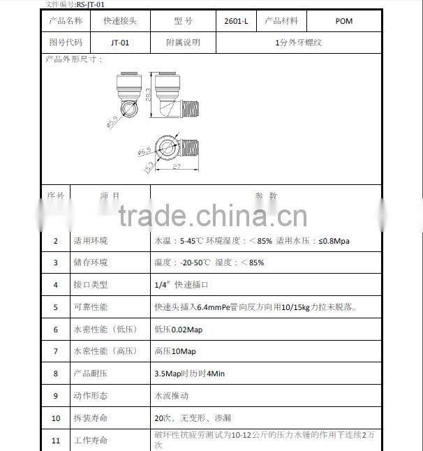 Household Water Purifier Couplings Fitting Quick Coupling Connector