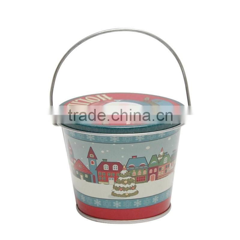 Food Grade Customize Christmas Popcorn Tin Bucket With Lid