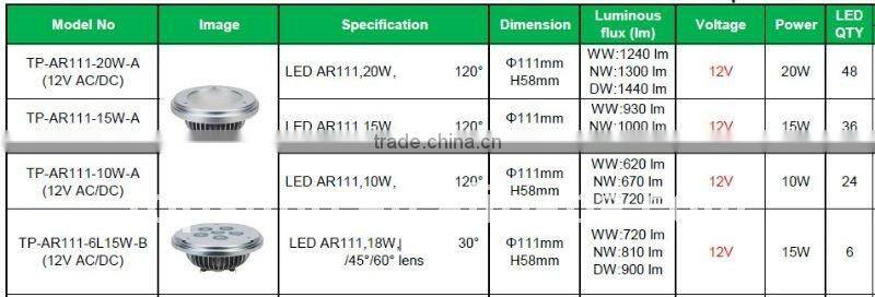 led bulb lamp QR111 lighting led High power LED AR111 bulb12V input, safter installation