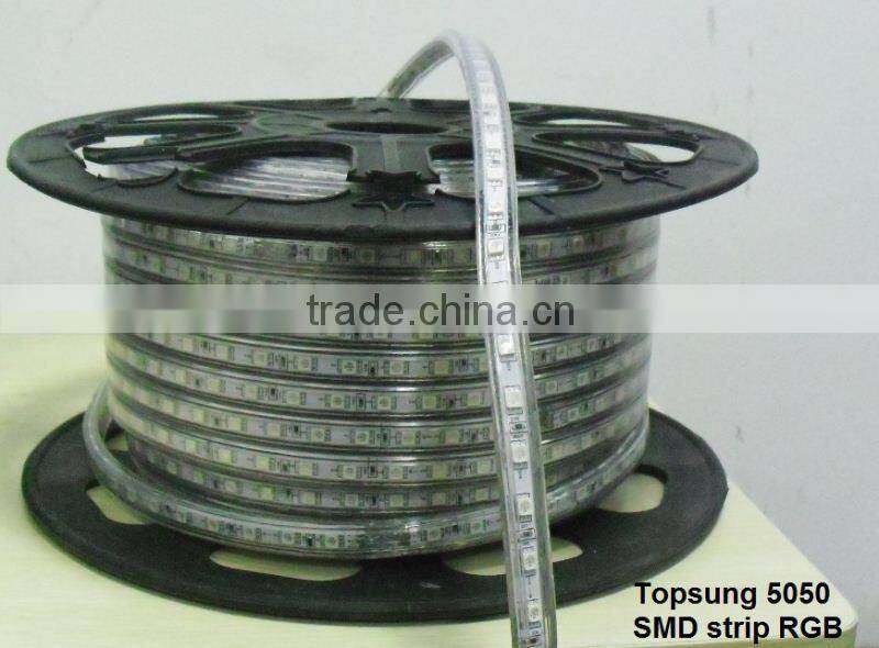 This 60PCS tri-chip 5050SMD per meter high output LED strips is to satisfy customers seeking a high brightness of the lighting and brilliant colors effects, the product characterized by the use of TOP 5050 SMD LED as a light source, there are bright, colorful, brightness uniform characteristics, for home decoration, hotels, an ideal light source cabinet lighting options.