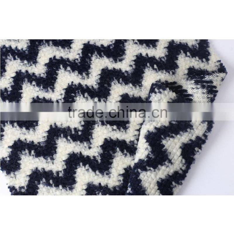 China Style 100%polyester Wave Design Coarse Jacquard Elastic Knit Fabric