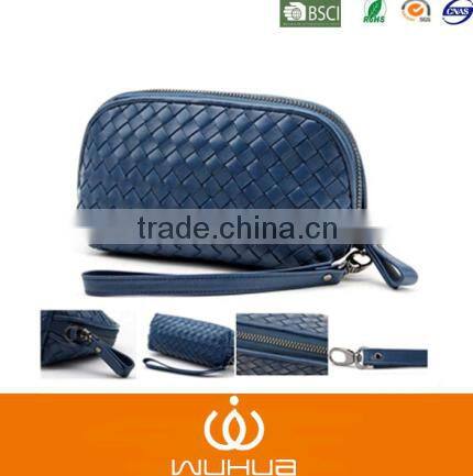 2015 spring WUHUA new design fancy woven PU cosmtic bag with gold zipper