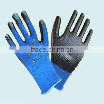 1.13 gague Blue Polyester Coated with Black Nitrile U3 glove2.high quality protection expert