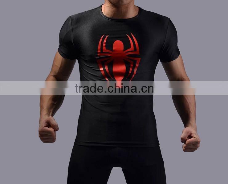 Wholesale OEM Service Male Superheroes Spiderman Compression Tshirt Base Layer Fitness Shirt Custome Sportswear for Men