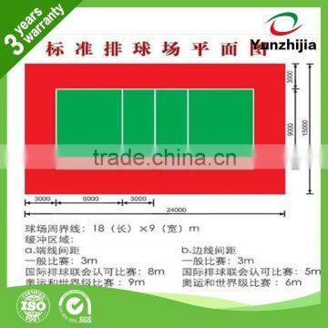 A: Generally green area is 162 square meters, and red area is 198 square meters. But please don't worry we will caculate for you, you just need to let us know the size and how many courts you will implement on the area.