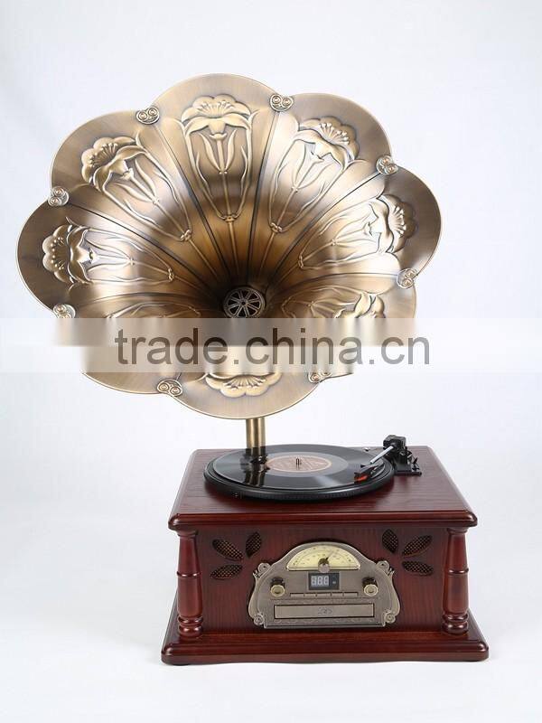 Main features The hotel with antique solid wood phonograph have bluetooth and USB recording machine