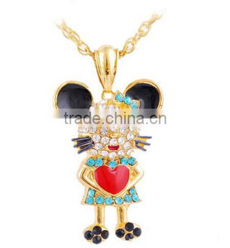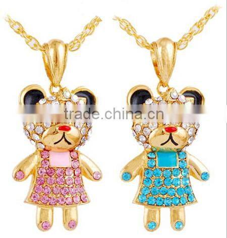 Metal Alloy Bear Cat Animal Children Pure Gold Necklace