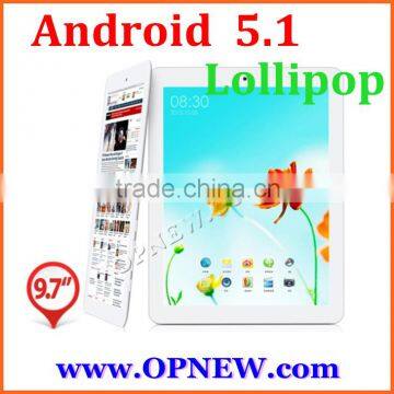 High performance RK3288 OctaCore ARM Cortex A7@ 2.0 GHz SupportsAndroid 5.1 Lollipop operating system 9.7" 10-point capacitive IPS touch screen with 2048*1536 resolution 178 degree visual Angel Built-in 6000mAh large capacity battery Supports 3D games with G-sensor and 3G calling Equipped with dual cameras (Front: 2.0MP; Rear: 5.0MP) 1GB RAM and 16GB ROM, and can expand memory with an external TF card Convieniently surf the internet via Wi-Fi and Bluetooth and External 3G |