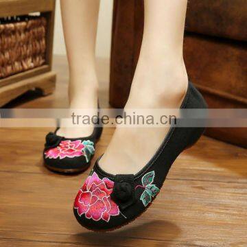 Women's Shoes Old Peking Flower Embroidery Slip On Flat Casual Cloth Walking Shoes Oxford Sole