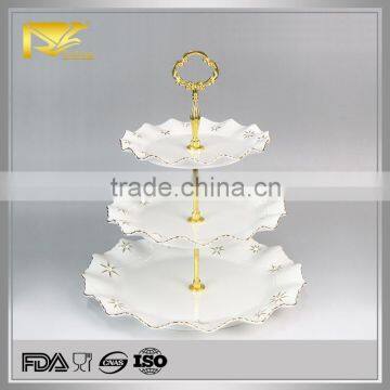 China Supplier Gold Embossed 3 Tier Cake Plate Stand, Beaded Cake Stand, Happy Birthday Ceramic Plate
