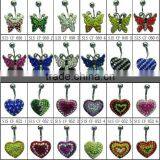 New Custom High Quality Stainless Steel Crystal Rhinestone Butterfly Heart Body Jewelry Navel Ring
