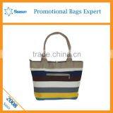 Hot Sell Fashoin Colorful Summer Printed Stripes Promotional Cotton Canvas Tote Beach Bag
