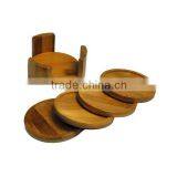 Wholesales Handmade Custom Cheap Round Set of 6 Bamboo Coaster With Holder