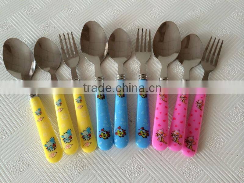 Art No: XINGJUN-Children cutlery set Description XINGJUN-C-new combines (410 or 430 or 304 ) stainless steel for metal parts and (ABS or PP or PS)food grade plastic material for handle.