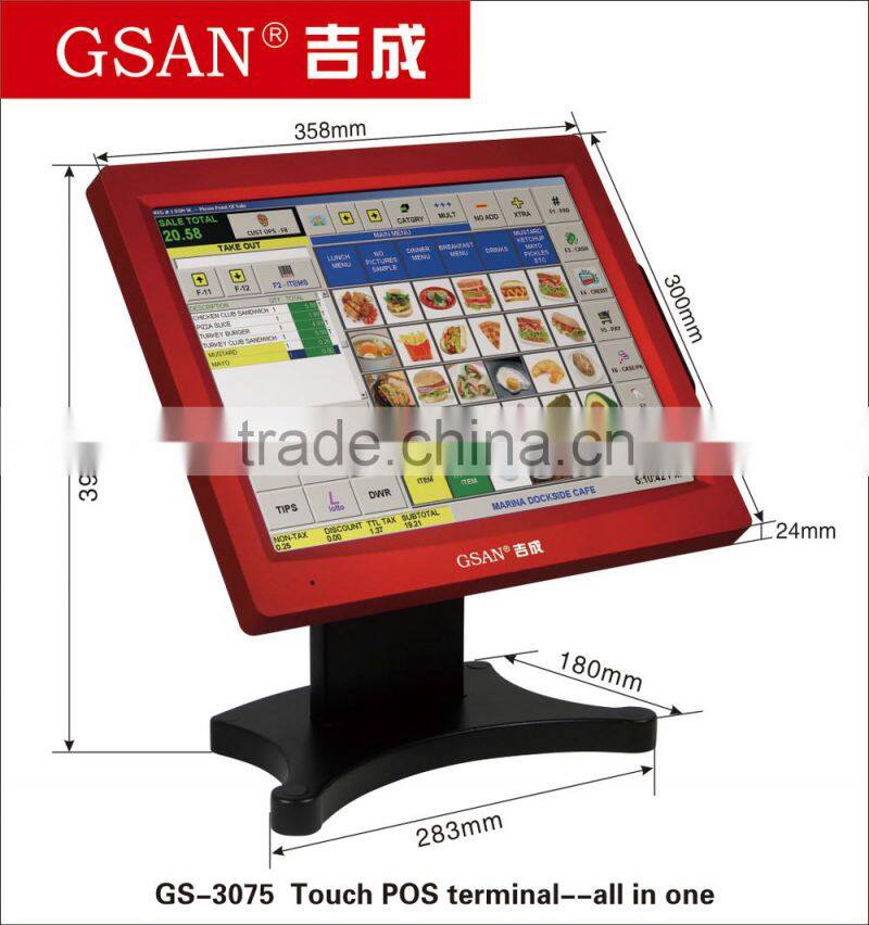 15'' Touch Ultra-thin Cashing Machine GS-3075 Red & Black for Supermarket and Retailing Shops --All in one POS