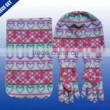 Printed High Quality Hot Sales Winter Fleece Scarf Hat Gloves Sets