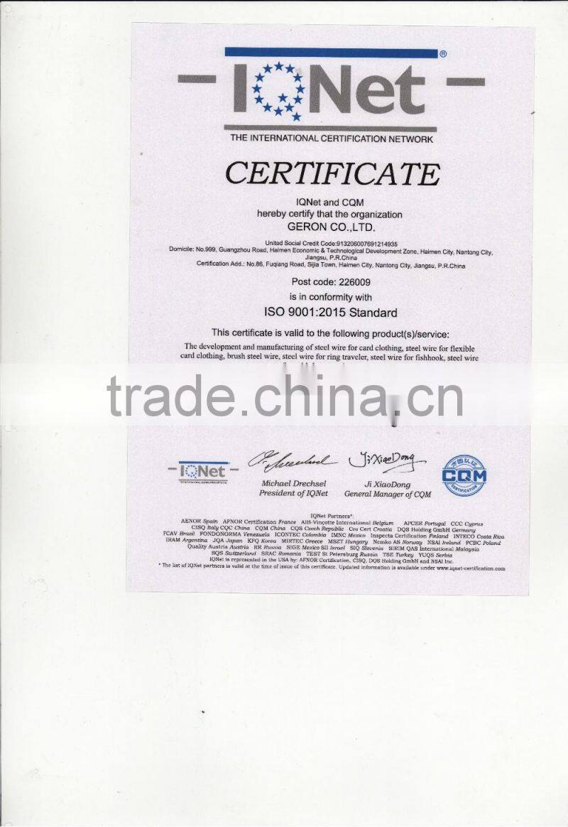 Geron Co., Ltd. was listed on the SME board in Shenzhen Stock Exchange on January 28, 2014 (stock code: 002722). It has Geron card clothing, Baiyin card clothing, Geron R&D, Huitong card clothing four subsidiaries, and a steel wire division, which provide first-class textile equipment, special steel wire and its related products for global users.