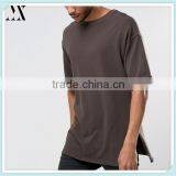 2016 Custom Wholesale Man Hoodie Long Line Hoodie With Woven Fabric In Khaki