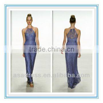 2014 New Style Halter Neckline Skirt and Lace Appliqued All Overly Turquoise Bridesmaid Dress (BDAM-4010)