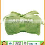 Green Super Soft Thick Coral Fleece Blanket With Silk Ribbon as Promotion Gifts